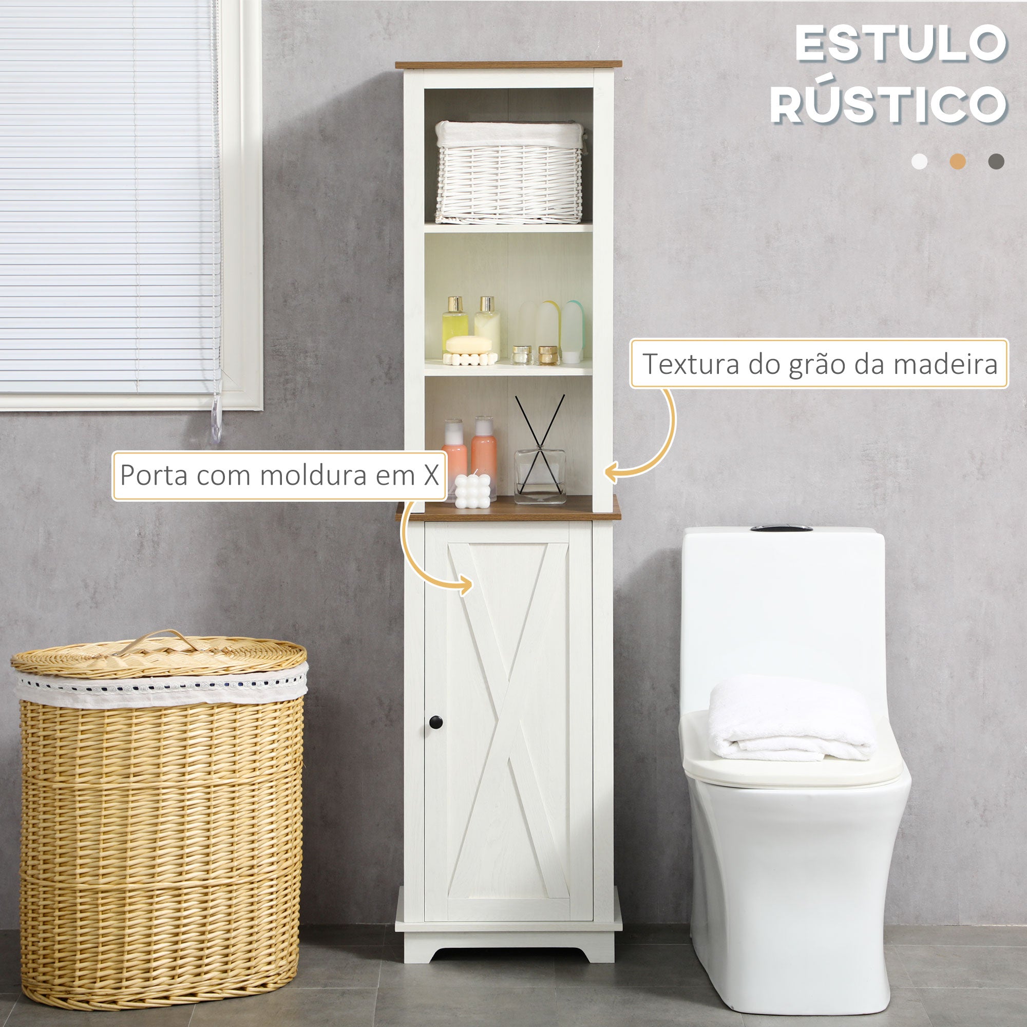 • ARMAZENAMENTO ADICIONAL: Parece que nunca há armazenamento suficiente no casa de banho para tudo o que você precisa. Este armário de arrumação para casa de banho é ideal, possui prateleiras abertas de 3 níveis e um armário com porta, para poder guardar toalhas, produtos de higiene diária, entre outros