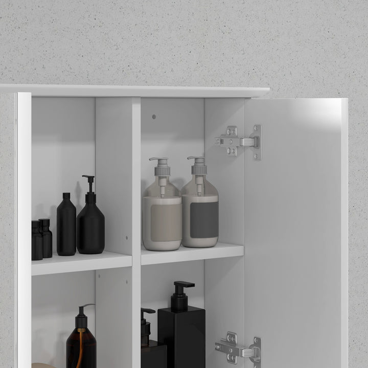 - MEDIDAS TOTAIS: 65x15x49 cm (CxLxA). Capacidade máxima de carga: 8 kg (total) e 2 kg (cada prateleira). Requer montagem Armazene todos os seus essenciais de casa de banho e mantenha os seus artigos de higiene pessoal sempre à mão com este armário com espelho da HOMCOM. Inclui quatro compartimentos atrás de duas portas e uma prateleira ajustável, ideal para organizar os seus itens essenciais do dia a dia. Além disso, o espelho integrado permite que se arrume na casa de banho a qualquer momento. Otimize o seu espaço com este prático armário de casa de banho!