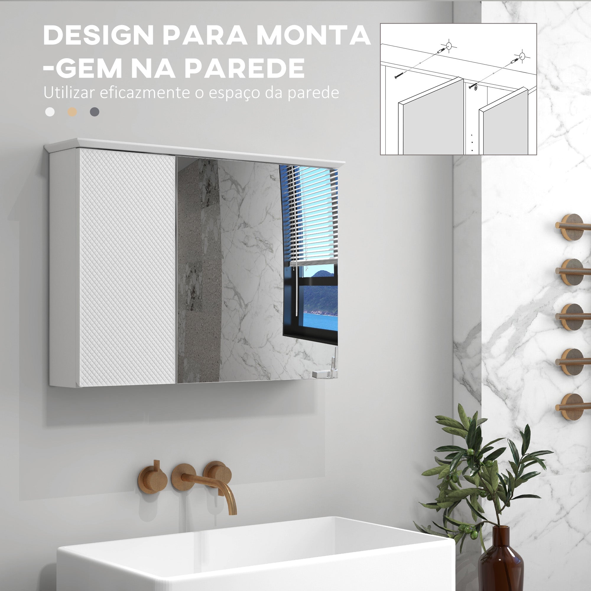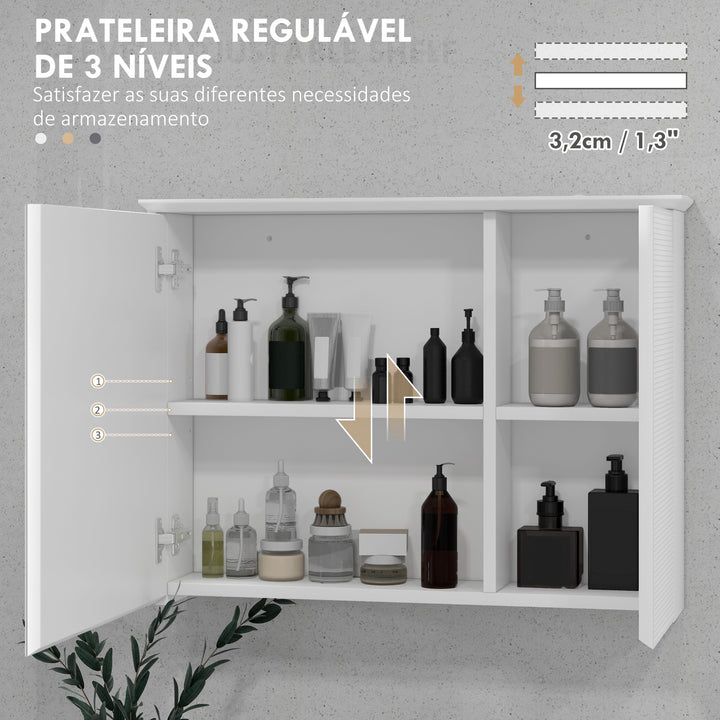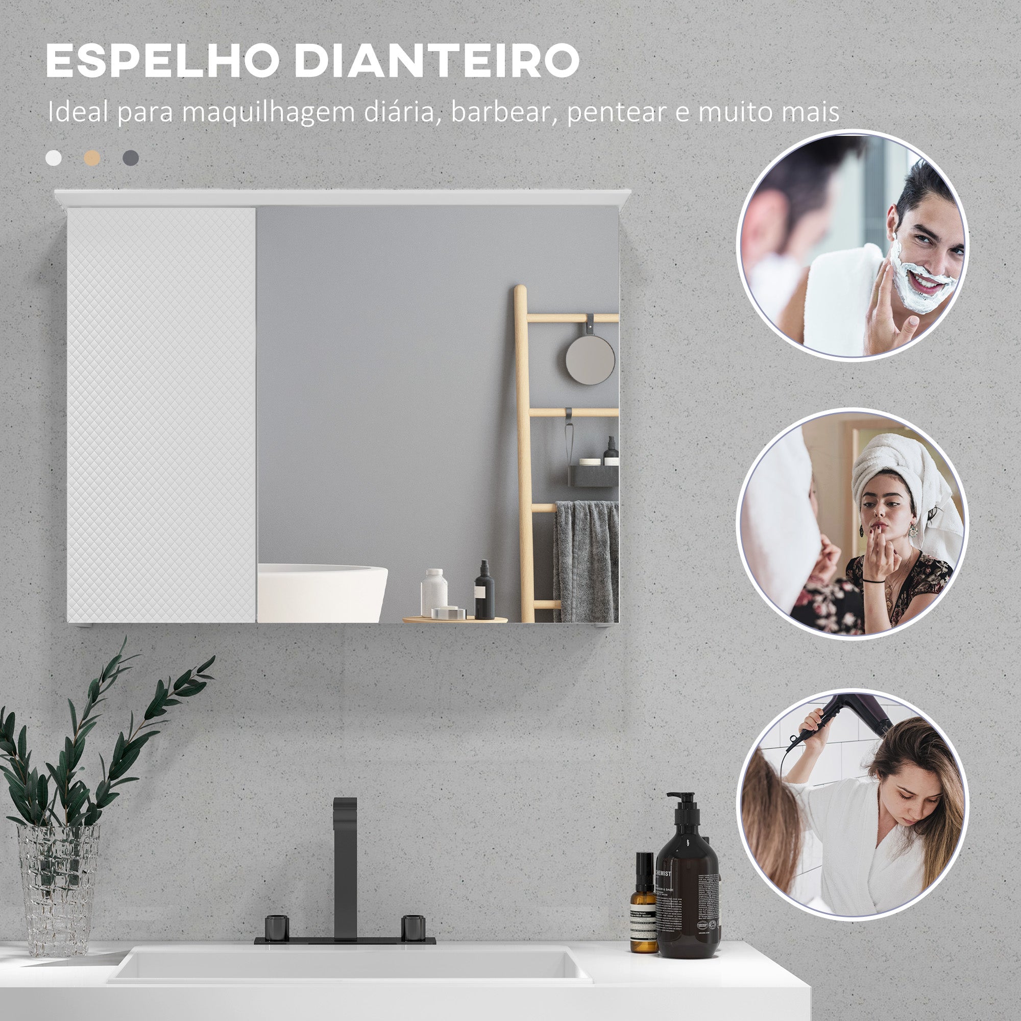 - Armário casa de banho com espelho para uma melhor preparação da sua maquilhagem matinal Possui 4 prateleiras ideais para manter todos os seus cosméticos, perfumes, entre outros sempre organizados Uma prateleira ajustável com 3 níveis para adaptar·se a objetos de diferentes tamanhos Desenho de montagem na parede que economiza espaço A porta esquerda é decorada com padrões em forma de diamante, adicionando um toque de elegância Dobradiças de aço proporcionam uma abertura e fecho suave das portas Fabricado em MDF resistente e fácil de limpar Requer montagem