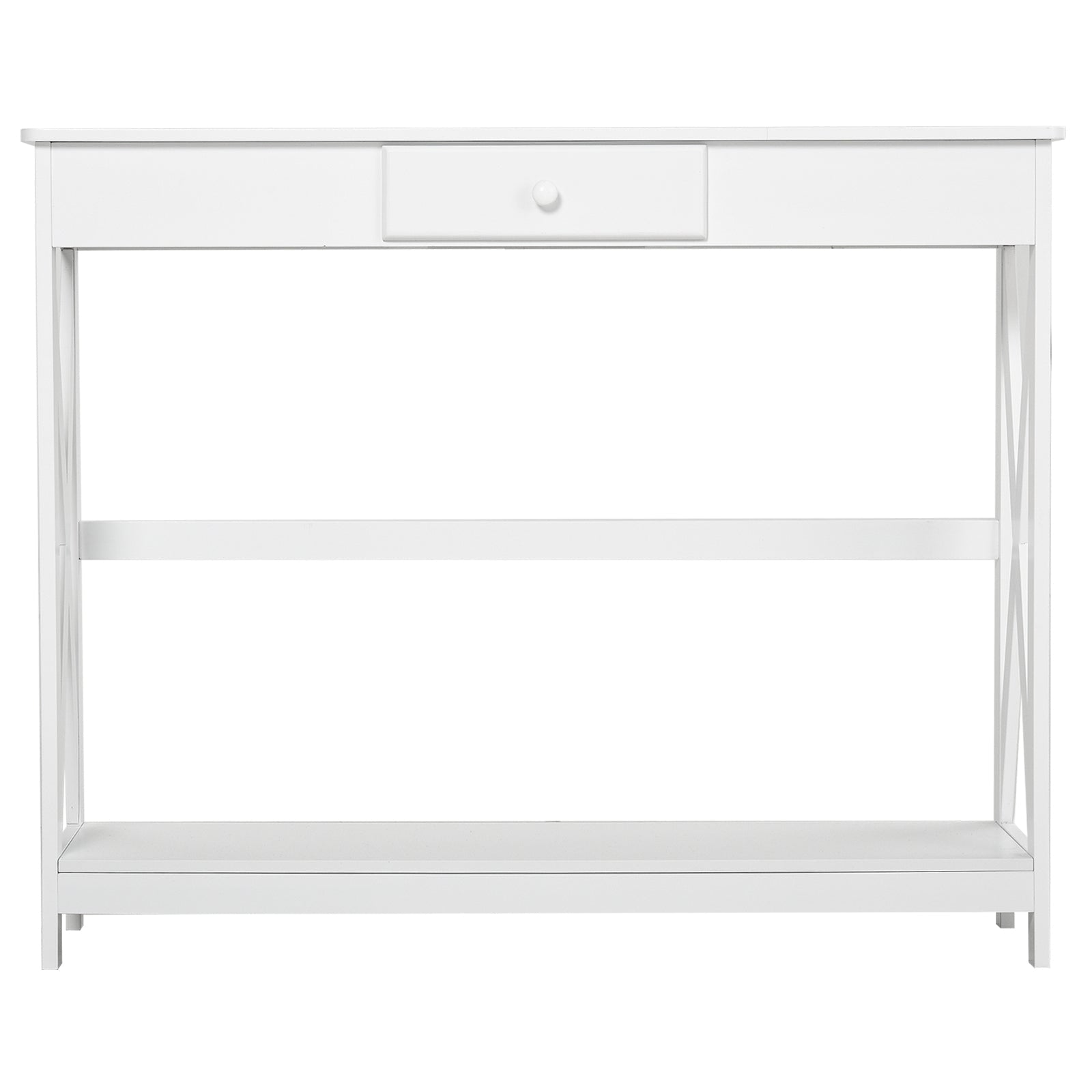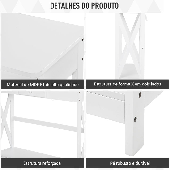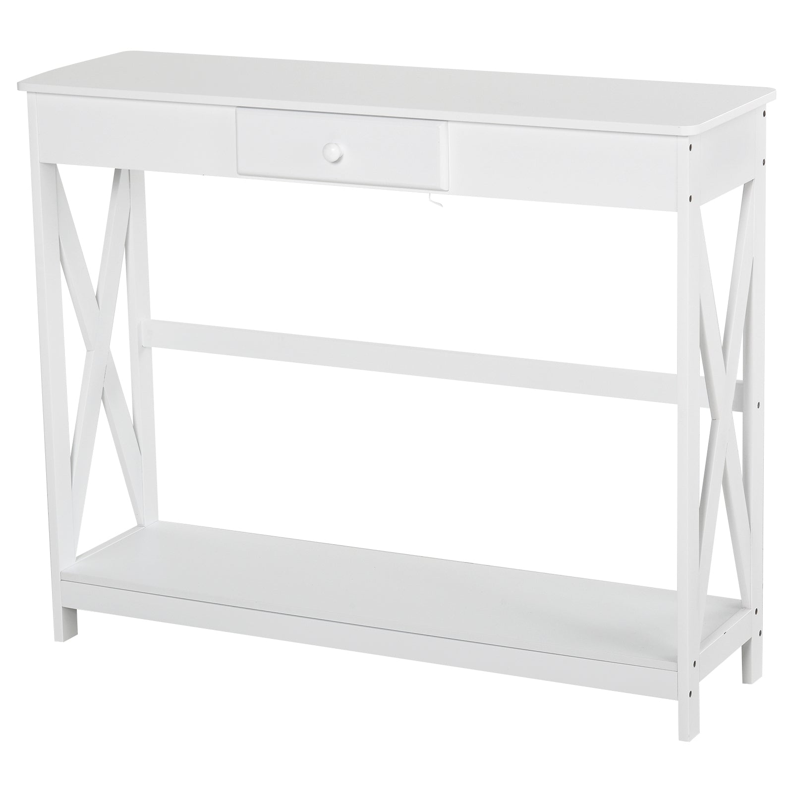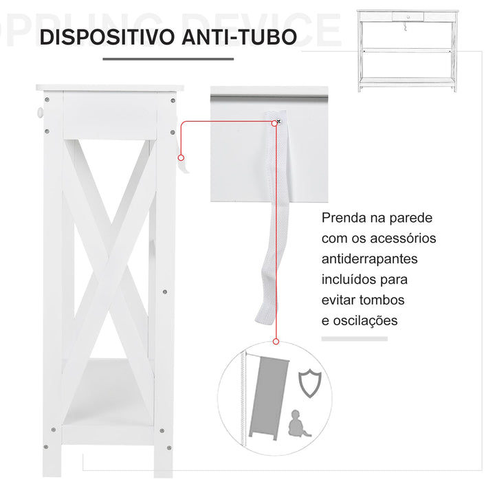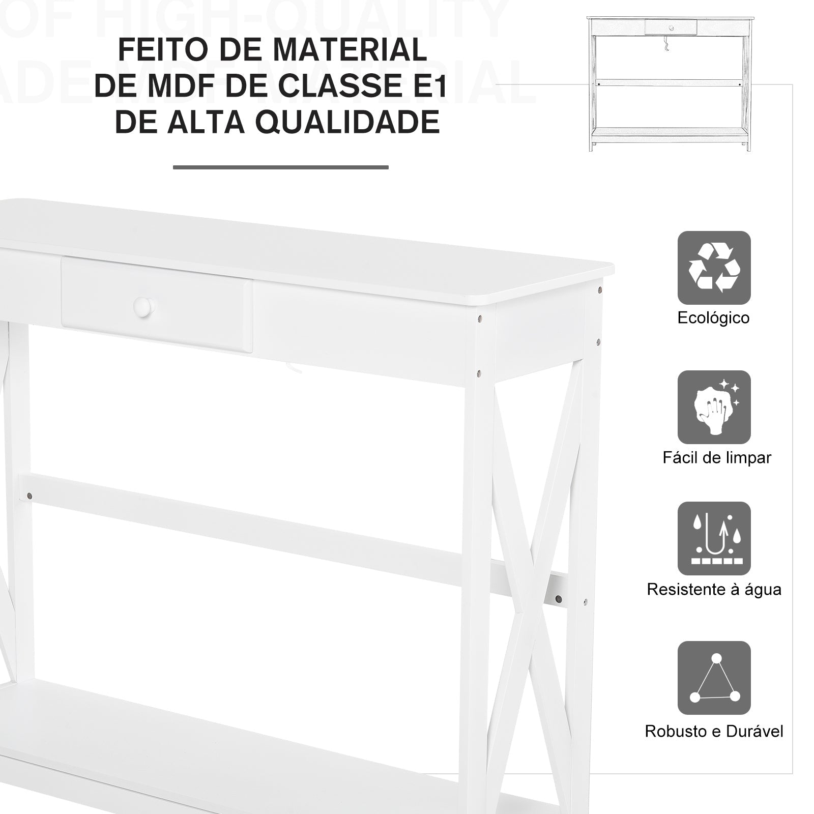 Mesa consola branca com prateleira 1 gaveta Armário com prateleira inferior 100x30x81cm Branco