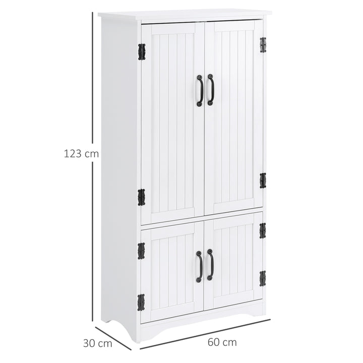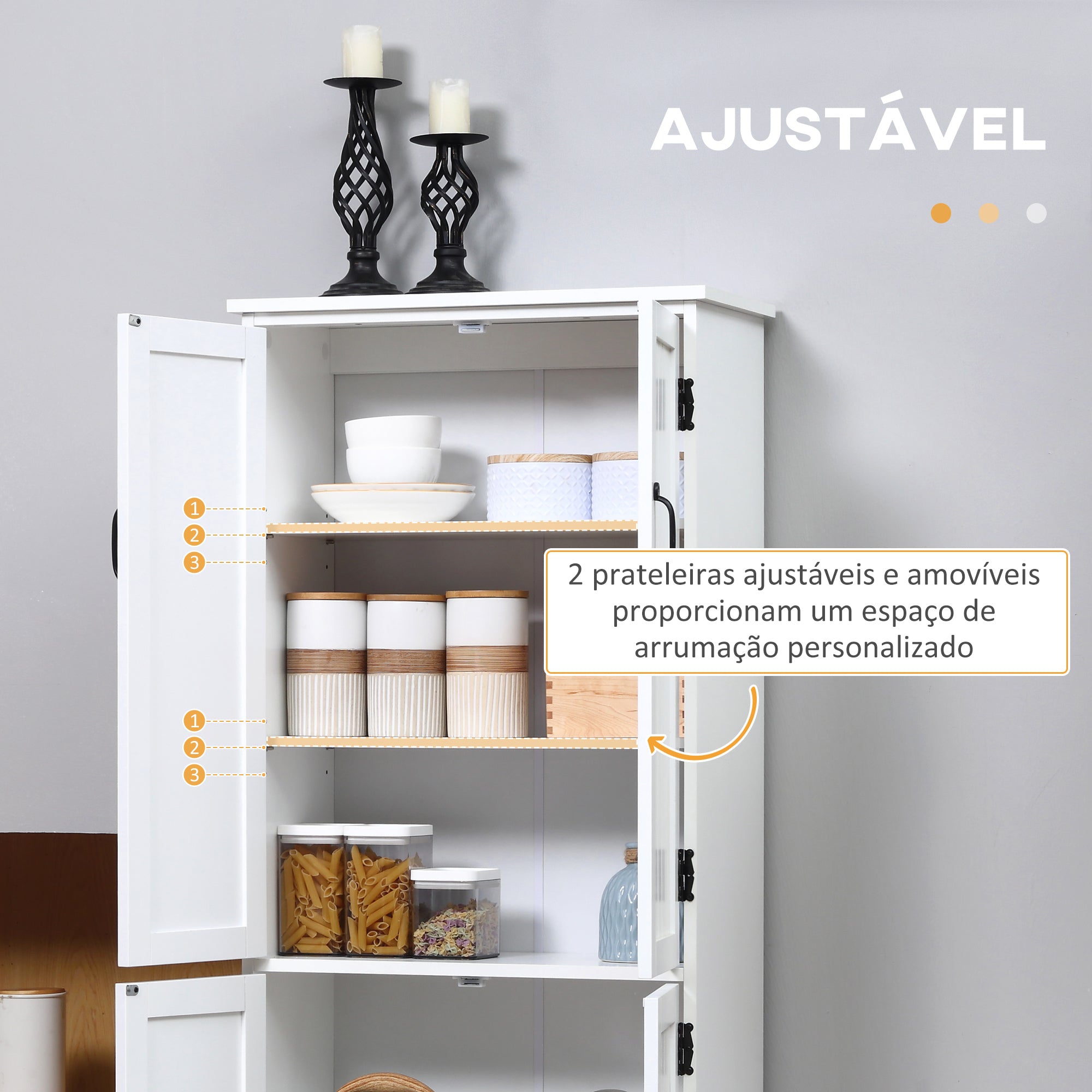 Armário de Cozinha Armário de Cozinha Alto Móvel Auxiliar com 4 Portas e Prateleiras Ajustáveis para Sala de Estar 60x30x123 cm Branco