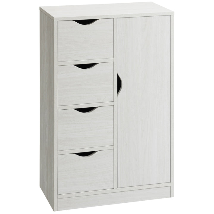 Armário de Sala de Estar Aparador Auxiliar com 4 Gavetas 1 Armário e Prateleira Inferior Móvel de Armazenamento Múltiuso para Dormitórios Sala de Jantar 54x29x83cm Branco