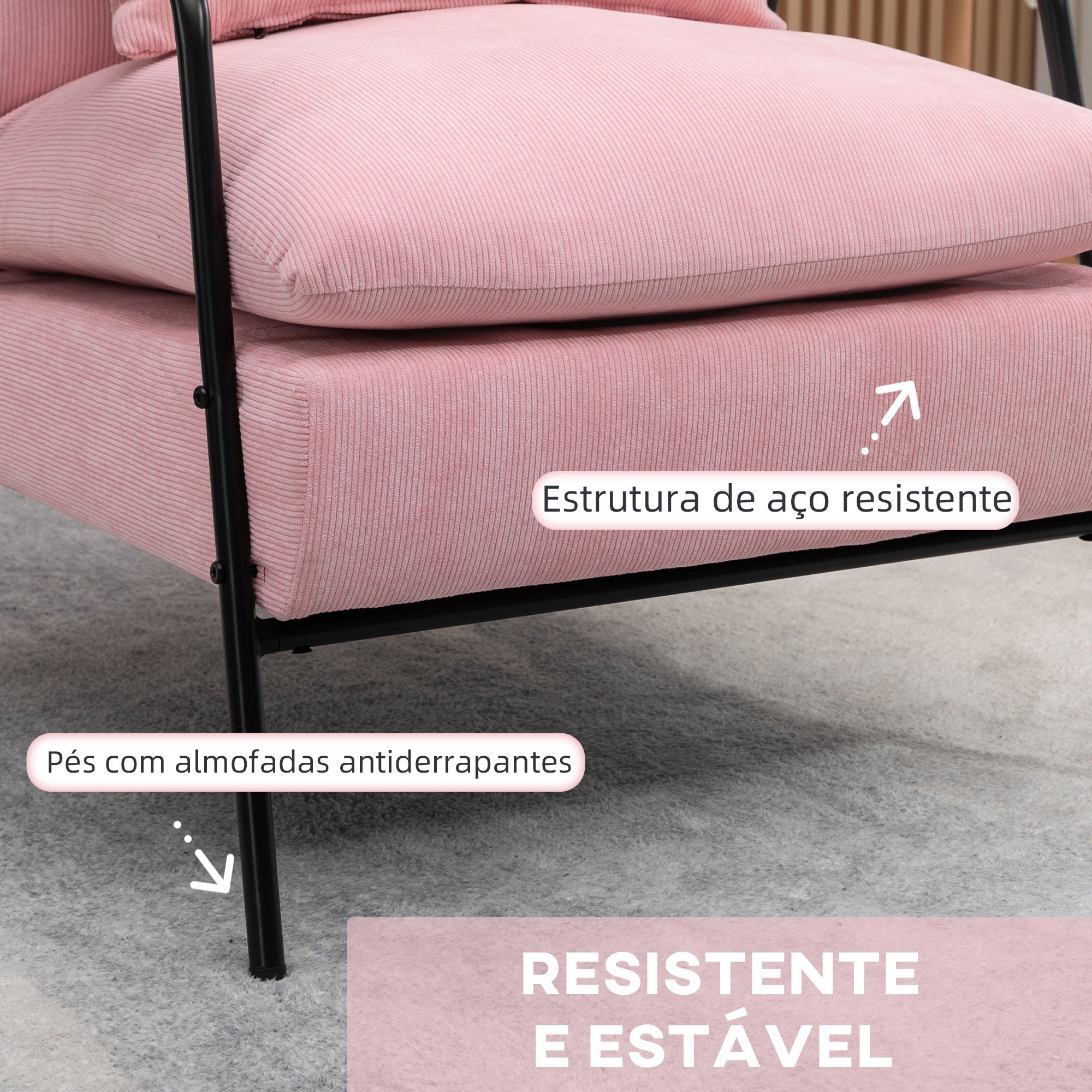 Poltrona Relax com Apoio para os Pés Poltrona Reclinável com Encosto Ajustável Estofada em Veludo Estrutura de Aço e Almofadas para Sala de Estar Dormitório 68x91,5x88cm Rosa