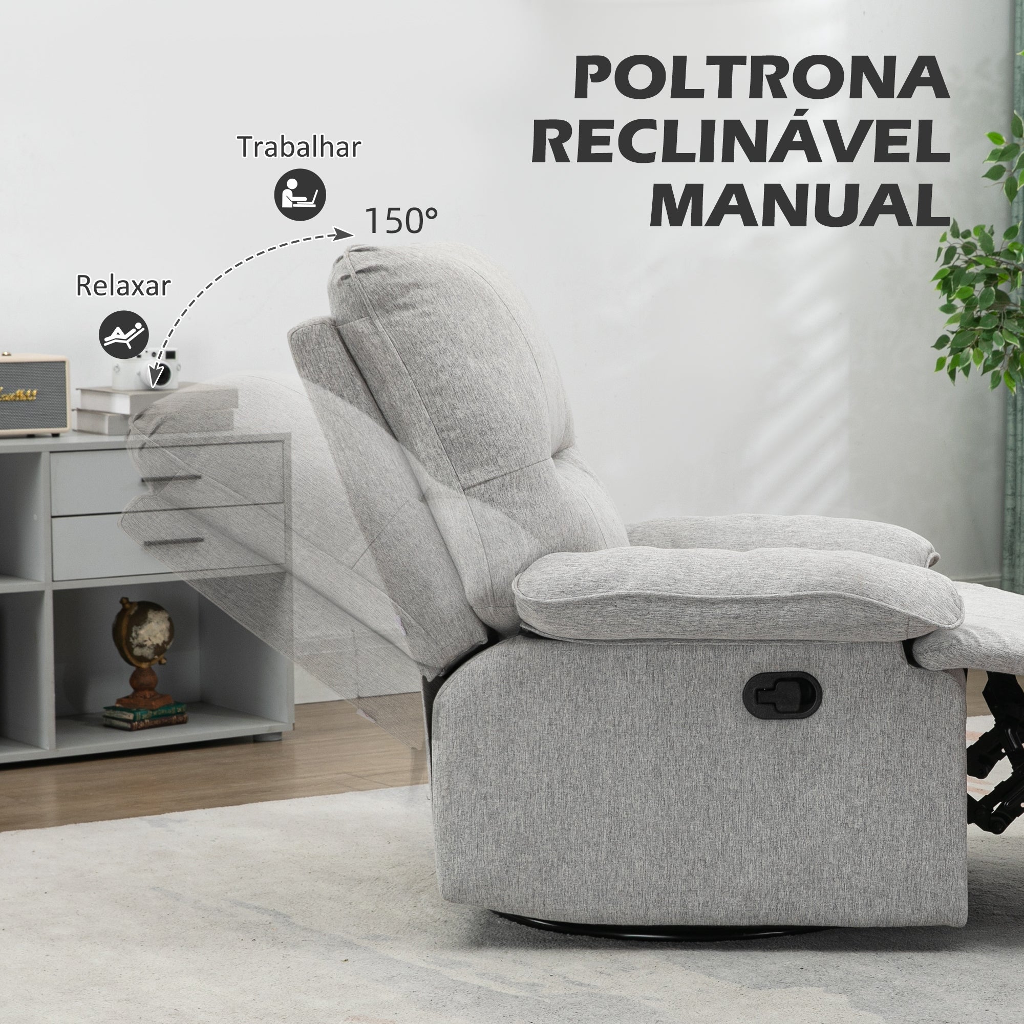 Poltrona Reclinável de Sala de Estar Poltrona Relax Reclinável Manual Estofado em Tecido com Apoio para os Pés Carga 160 kg para Pessoas entre 150-190 cm 89x98x101 cm Cinza