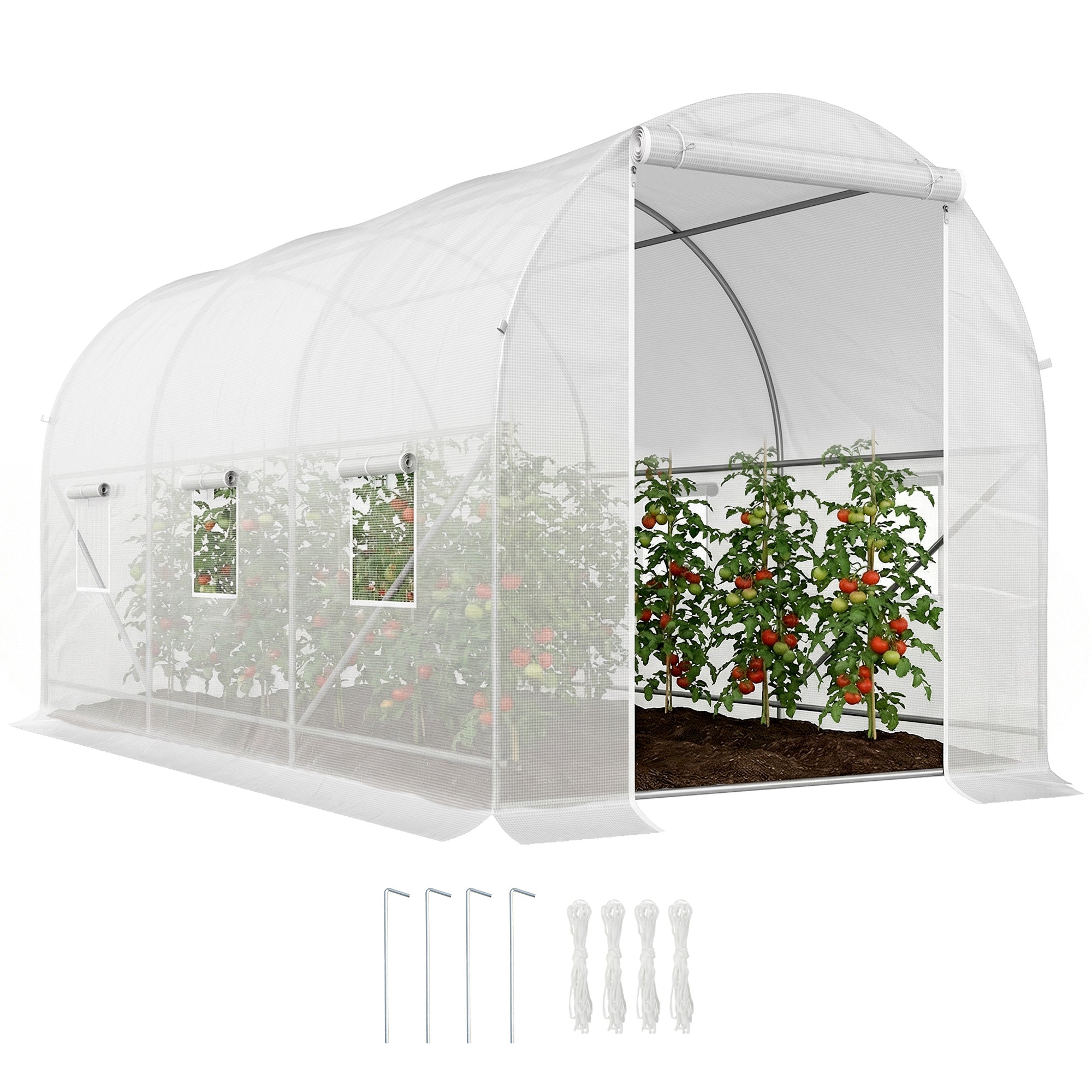 Estufa de Jardim 350x200x200 cm Estufa de Túnel com Porta Enrolável e 6 Janelas Cobertura de PE 140 g/m² Estrutura de Metal para Cultivo de Plantas Verduras Branco