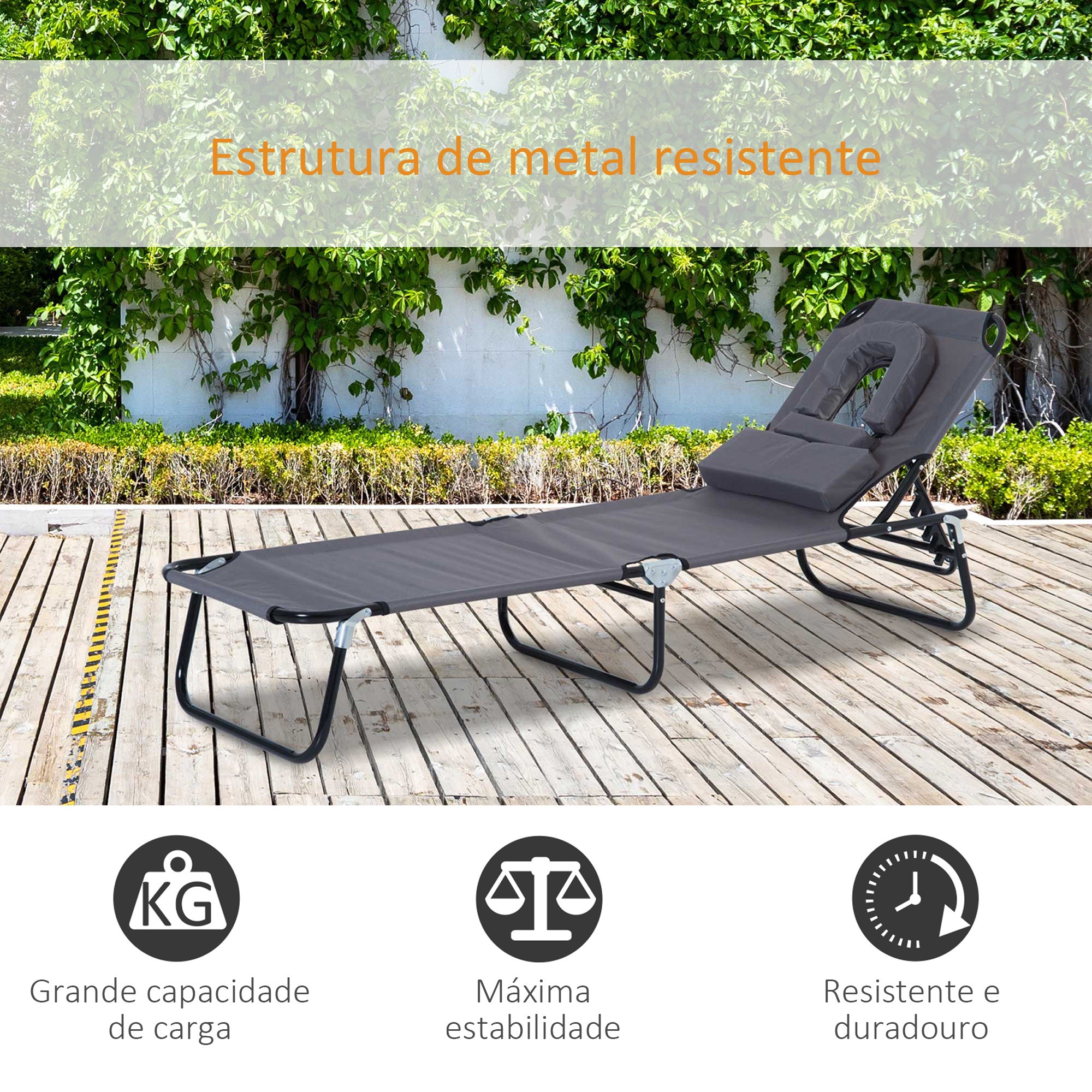 • Espreguiçadeira de jardim dobrável e ajustável para maior conforto de uso