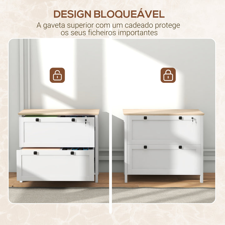 Armário de Escritório Móvel Arquivador com 2 Gavetas 2 Barras Suspensas Fechadura e 2 Chaves para Tamanho A4 para Estúdio Sala de Estar 79x40x72 cm Branco e Madeira