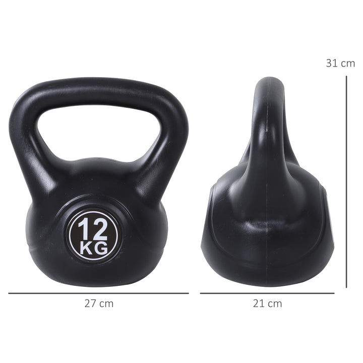 Peso Russo de 12 kg Kettlebell Preenchido de Areia com Punho Largo e Antiderrapante para Trenos em Casa e Ginásio 27x21x31 cm Preto